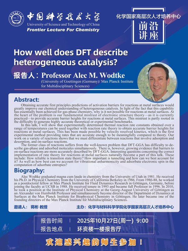 USTC Frontier Lecture: Professor Alec M. Wodtke on the Application of DFT in Heterogeneous Catalysis