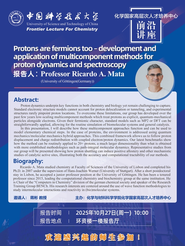 USTC Frontier Lecture: Professor Ricardo A. Mata on Multicomponent Methods for Proton Dynamics